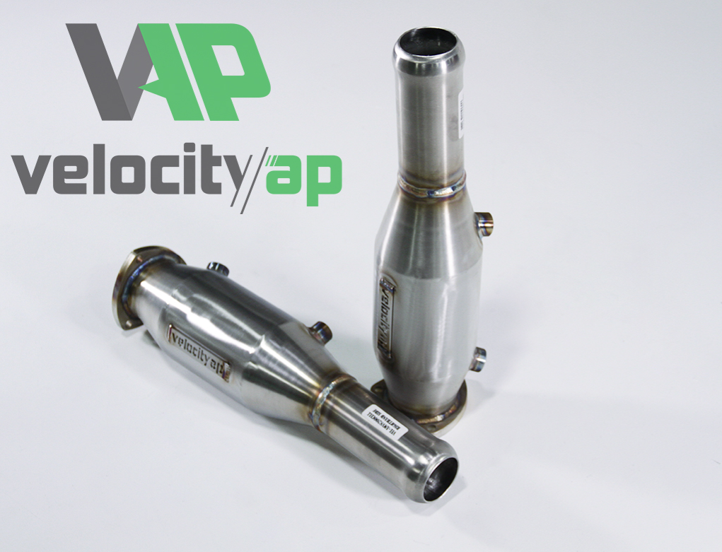 The ultimate V8 Vantage sports cats from Velocity Automotive Performance! high flow Motorsport-grade 200 cell replacement catalysts for the V8 Vantage. In addition to giving the exhaust not an aggressive edge, these catalysts replace the cumbersome OEM units which contain both a 600-cell primary catalyst and a 400-cell secondary catalyst with a single 3200 cell 20gsm loaded motorsport unit.